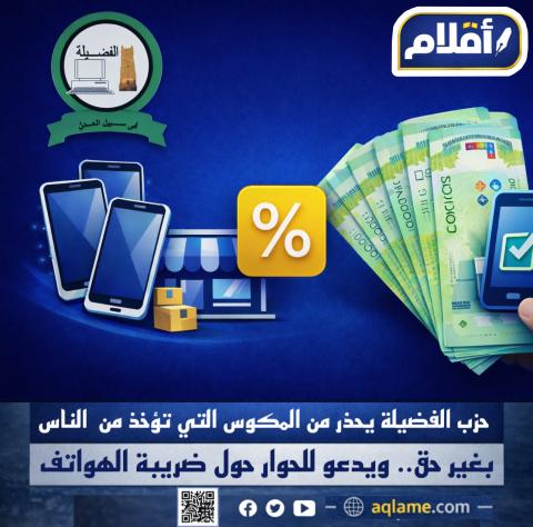 قال حزب الفضيلة انه تابع باهتمام بالغ الجدل الذي أثارته الضريبة الجديدة المفروضة على الهواتف المحمولة، وما صاحبها من احتجاجات وإضرابات وإغلاق للمحلات، معتبرًا أن القرار أثّر على قطاع حيوي يوفر فرص عمل لآلاف الشباب ويعيل أسرًا عديدة.