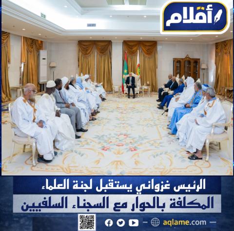 استقبل رئيس الجمهورية، محمد ولد الشيخ الغزواني، اليوم في القصر الرئاسي بنواكشوط، أعضاء لجنة العلماء الموريتانيين المكلفة بإجراء الحوار مع السجناء السلفيين.