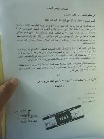 وأكد أنه "رفع تظلمه لوزير العدل عبر رسالة مكتوبة، ولا يزال ينتظر رفع الظلم عنه".