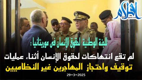 عبرت اللجنة الوطنية لحقوق الإنسان في موريتانيا عن ارتياحها لظروف احتجاز المهاجرين غير النظاميين في البلاد، واصفة إياها بـ "المحترمة". جاء ذلك في بيان نشرته اللجنة اليوم السبت، مشيرة إلى عدم تلقيها أي شكاوى تتعلق بإساءة المعاملة من المهاجرين المحتجزين.