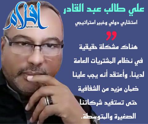 يتمتع السيد علي طالب عبد القادر بخبرة مهنية تقارب 25 عامًا في مؤسسات رئيسية من القطاعين العام والخاص في موريتانيا، منها خمسة عشر (15) عامًا في إدارة المشتريات العامة، وخاصةً تلك الممولة من البنك الدولي والبنك الأفريقي للتنمية.