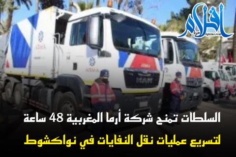 منحت وزارة الداخلية شركة أرما القابضة، المُعهد إليها بإدارة النفايات في نواكشوط، مهلة زمنية قدرها 48 ساعة لتصحيح أي ملاحظات ميدانية تُظهر خللًا في أدائها، وذلك تحت طائلة تطبيق عقوبات تعاقدية.