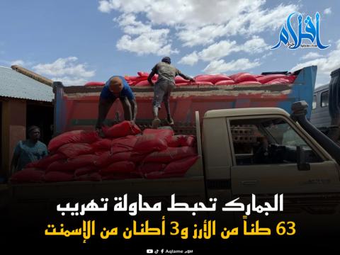 أعلنت إدارة الجمارك الموريتانية إحباط عدة محاولات تهريب خلال الأيام الأخيرة، شملت أكثر من 63 طناً من الأرز الأجنبي و3 أطنان من الإسمنت، تم ضبطها في ولايات مختلفة من الجنوب والشرق.