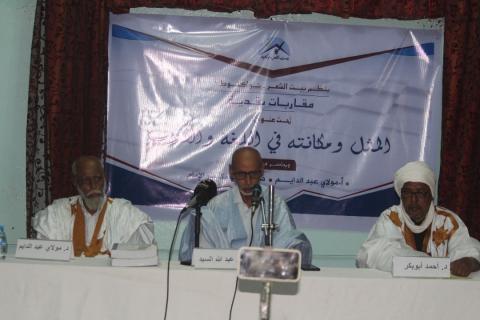 نظم بيت الشعر نواكشوط مساء اليوم الخميس ندوة من ندوات "مقاربات نقدية"، حول موضوع "المثل ومكانته في اللغة والأدب"؛ حاضر فيها كل من الأستاذ مولاي عبد الدايم و الدكتور أحمد أبو بكر الإمام، وقدم لها الأستاذ الدكتور عبد الله السيد مدير بيت الشعر.