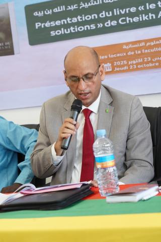وخلال الندوة، قدّم الدكتور ولد عابدين عرضًا حول كتاب «الإرهاب: التشخيص والحلول» لمؤلفه فضيلة الإمام العلامة الشيخ عبد الله ولد بيه، موضحًا أن هذا الكتاب يمثل إسهامًا فكريًا عميقًا في المشروع الحضاري التجديدي الذي يقوده الشيخ، من خلال مقاربة علمية تجمع بين الأصالة التراثية والرؤية العقلانية الحديثة.