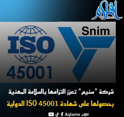 أعلنت الشركة الوطنية للصناعة والمناجم (سنيم) عن حصول نظامها الخاص بتسيير السلامة والصحة في بيئة العمل على شهادة المطابقة الدولية ISO 45001، التي تُعد المعيار العالمي الأبرز في مجال إدارة السلامة والصحة المهنية داخل المؤسسات.