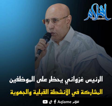 وخلال لقاء جمعه مساء السبت بأطر ووجهاء انبيكت لحواش في مقاطعة الاظهر بولاية الحوض الشرقي، شدد الرئيس على أن الموظفين وأعوان الدولة، بوصفهم ممثلين لرمزية الدولة وهيبتها، ممنوعون من تنظيم أو المشاركة في أي نشاط قبلي أو جهوي، أو أي فعالية تمس بمبدأ المواطنة أو تضعف روح الانتماء الوطني.