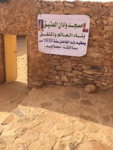 حُقَّ للوادانيين أن يفتخروا بأنهم هم أول من صدح على هذه الأرض بالآذان من منارة مسجد، حسب بعض الروايات. فمنارة مسجد وادان الذي تم تشييده منذ 870 عاما، ربما تكون أقدم منارة في هذه البلاد. وحُقَّ للوادانيين أن يفتخروا كذلك بأنهم استطاعوا بعد مرحلة التأسيس ومسجدها، أن يشيدوا مسجدا جامعا بين جمعتين، حسب ما تقول رواياتهم الشعبية. فمسجد المدينة القديمة وجامعها الحالي تم تشييده في العام 1835م بمبادرة من رجل الخير المنفق "يحظيه ولد الفاضل". تقول الرواية الشعبية التي يتداولها الوادانيون بأن الماء الذي كان يستجلب من الوادي قد نفد قبيل اكتمال بناء منارة المسجد، ونظرا لحرص المشيدين على إكمال بناء المسجد قبل وقت صلاة الجمعة، فقد اضطروا لخلط الطين بالدهن لإكمال بناء المنارة.