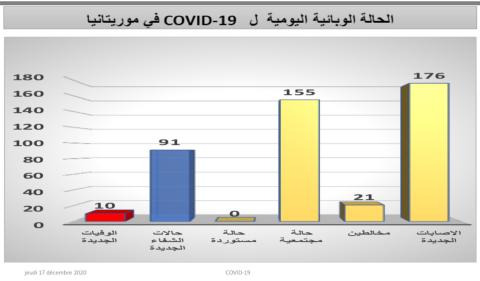 وبلغ مجموع الإصابات بالفيروس في موريتانيا إلى 11805، والوفيات 254، فيما بلغ عدد حالات الشفاء 8372.