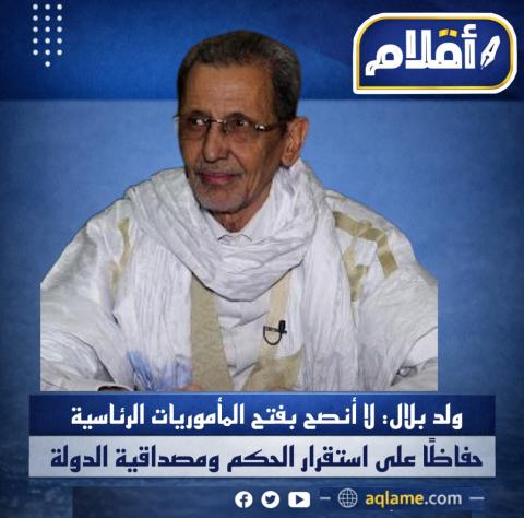 وأكد ولد بلال أنه لا ينصح بتعديل الدستور في هذا الجانب، لما قد يحمله من مخاطر على الحوكمة على المدى البعيد، ومجازفة سياسية غير محسوبة العواقب على المدى القريب، داعيًا إلى صون هيبة الدولة والحفاظ على مصداقية خياراتها الدستورية.