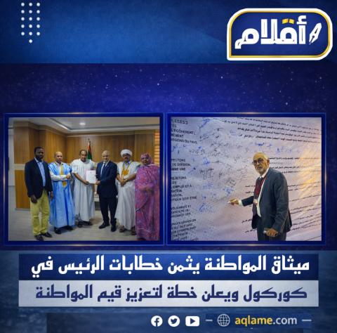 أعربت لجنة الإشراف على ميثاق المواطنة عن تثمينها لما ورد في خطابات رئيس الجمهورية محمد ولد الشيخ الغزواني خلال زيارته الأخيرة إلى ولاية كوركول، مؤكدة أن مضامينها ركزت على ترسيخ قيم المواطنة الجامعة وتعزيز الوحدة الوطنية وثقافة الانتماء المشترك.