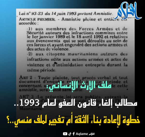 عاد النقاش حول إلغاء قانون العفو الصادر سنة 1993 ليحتل صدارة السجال السياسي والحقوقي في موريتانيا، في لحظة تتقاطع فيها التحولات الوطنية مع اتساع دائرة المطالب بإغلاق ملف الإرث الإنساني بشكل عادل ونهائي.