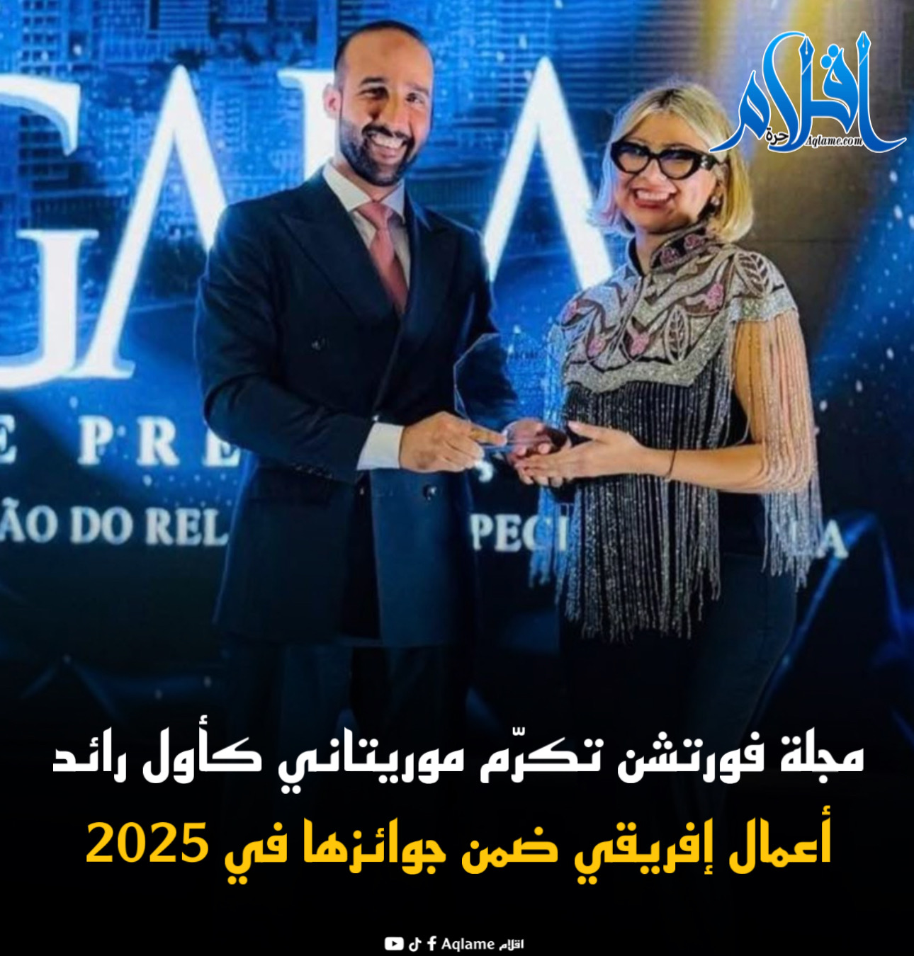 اختارت مجلة «فورتشن» الأمريكية المتخصصة في الاقتصاد والأعمال، رائد الأعمال الموريتاني الشاب ملعينين ولد الصيام، رئيس غرفة التجارة والصناعة الإماراتية–الأنغولية في أنغولا، كأفضل رئيس لغرفة تجارة لعام 2025.