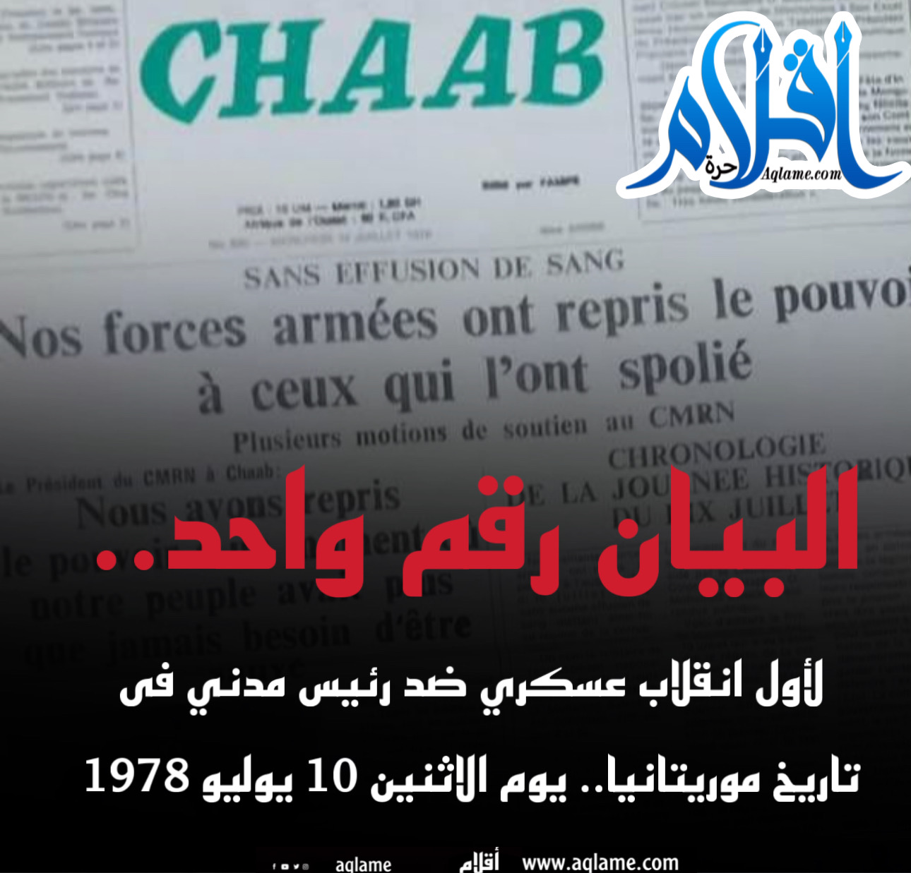 #ذاكرة_أقلام : في مثل هذا اليوم من 1978 استيقظ سكان نواكشوط على انتشار مكثف لسيارات الجيش في وسط العاصمةً والمحاور الطرقية الرئيسية، بالنزامن مع إذاعة البيان رقم واحد علي امواج الاذاعة الرسمية معلنا الإطاحة بالنظام المدني الذي حكم البلاد منذ 1960 وميلاد حكم عسكري .