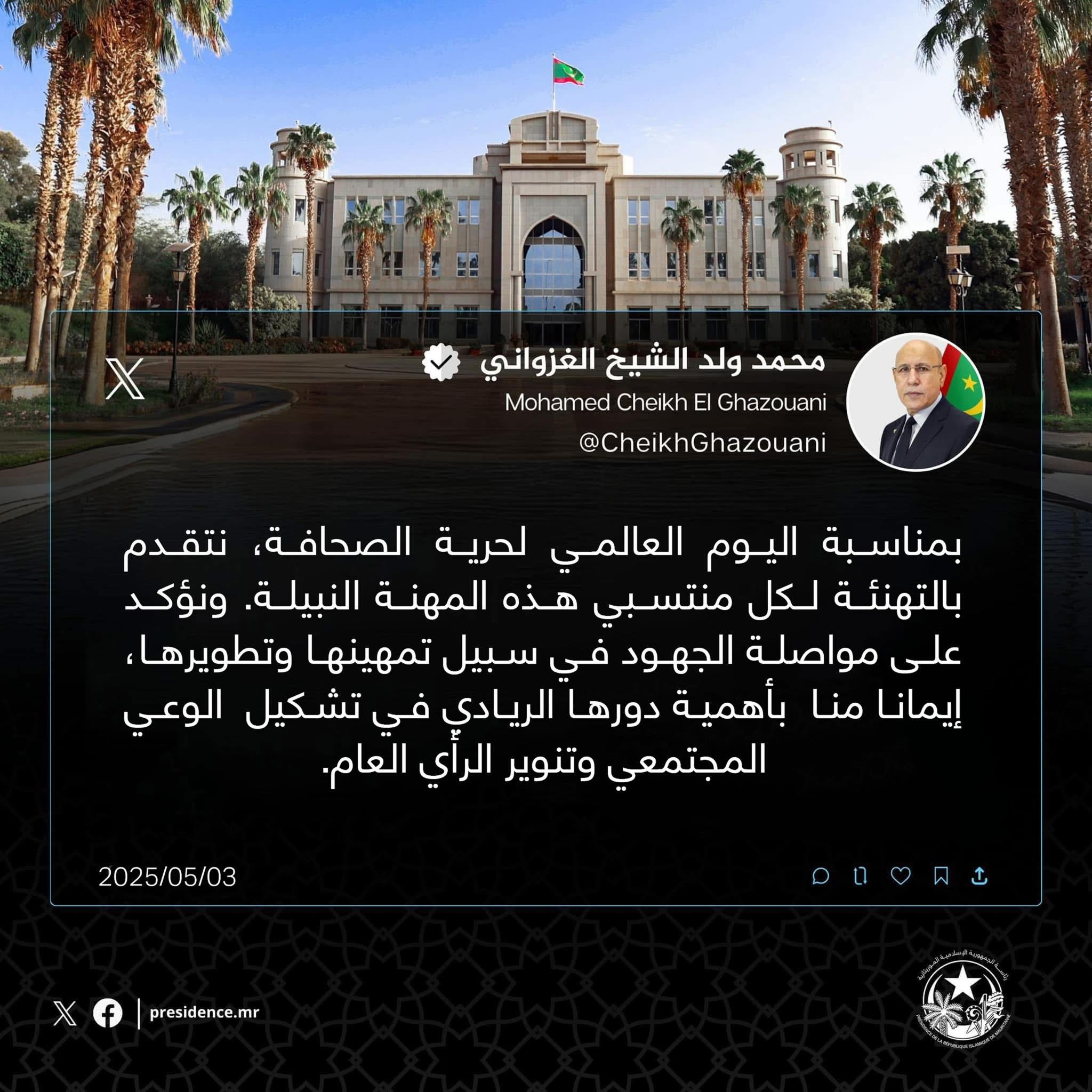 كتب الرئيس غزواني على حسابه فى تويتر سابقا: