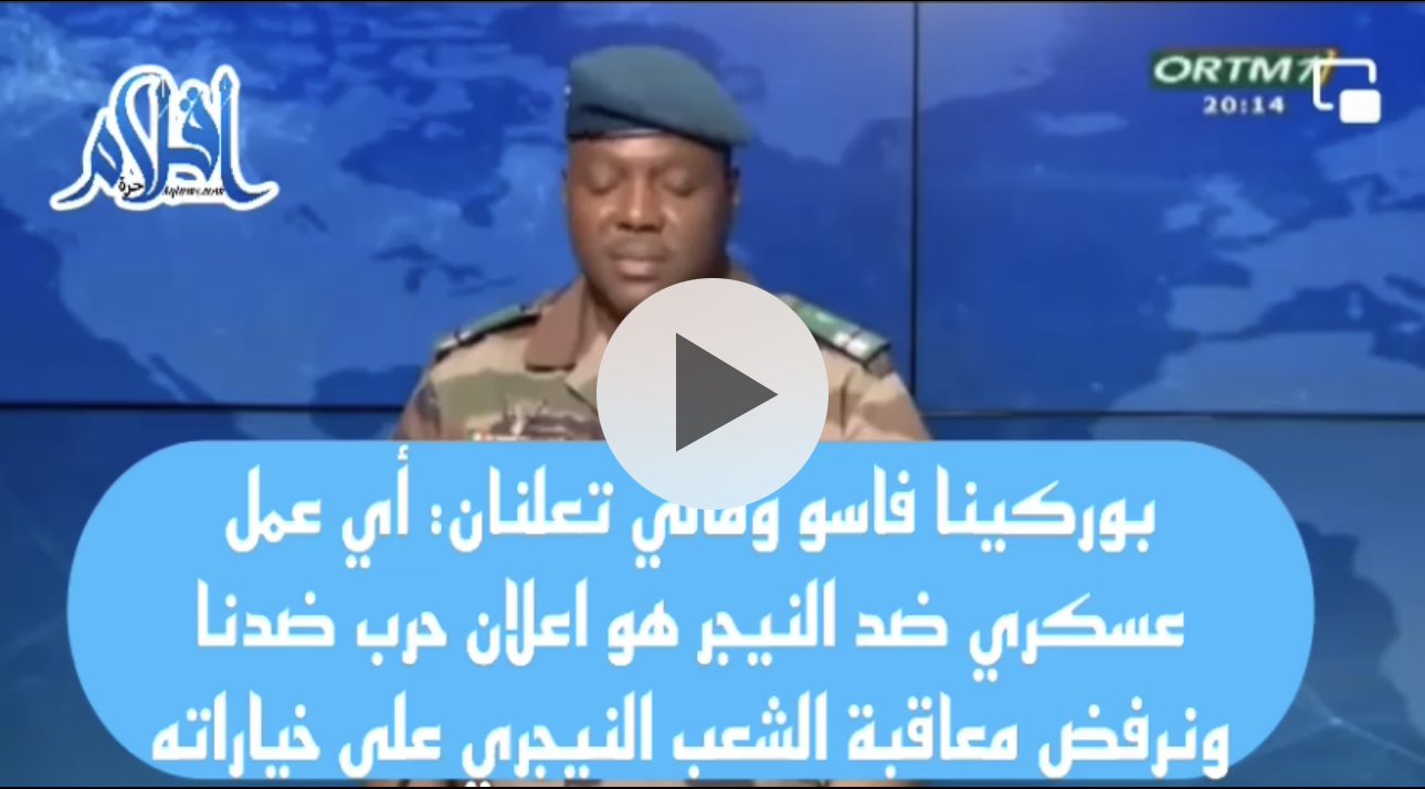 أعلنت مالي وبوركينا فسو في بيان مشترك عن رفضهما للعقوبات المفروضة من طرف مجموعة دول غرب افريقيا ضد النيجر وتلويحها بالتدخل العسكري لإفشال الانقلاب. وحذرت الدولتان من أن "أي تدخل عسكري ضد النيجر سيكون بمثابة إعلان الحرب ضد بوركينا فاسو ومالي"