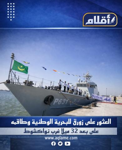 عثرت السفينة الحربية «غورغول» التابعة للبحرية الوطنية، على زورق عسكري مفقود وطاقمه، وذلك على بعد 32 ميلاً بحريًا غرب العاصمة نواكشوط، عند الإحداثيات التالية: