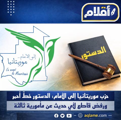 أعلن حزب موريتانيا إلى الأمام إدانته الشديدة ورفضه المطلق لما تم تداوله مؤخرًا من دعوات أو تلميحات تمس الدستور الموريتاني أو تسعى إلى فتح المجال أمام مأمورية رئاسية ثالثة، معتبرًا ذلك خرقًا صريحًا لنصوص الدستور وروحه.