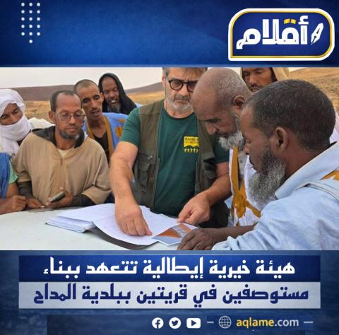 وقعت هيئة خيرية إيطالية، اليوم، اتفاقية مع عمدة بلدية المداح محمد يسلم أرهينة، تقضي ببناء مستوصفين صحيين في قريتي تنمرورت ولمصيدي التابعتين للبلدية، بولاية آدرار.