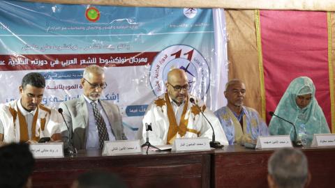 شهدت فعاليات الدورة الحادية عشرة من مهرجان نواكشوط للشعر العربي، صباح اليوم 11 فبراير 2026 تنظيم ندوة نقدية تحت عنوان "القصيدة الموريتانية الحديثة: إشكالات المبنى والمعنى"، جمعت نخبة من الأكاديميين والباحثين الذين غاصوا في أعماق التحولات الفنية والنسقية التي طرأت على المتن الشعري الموريتاني. الندوة التي أدارها الأستاذ محمد المامون البار، وأشرف على تقرير مضامينها د. عبد الرحمن سيديا، قدمت قراءات متنوعة بين البنية، والنسق، وإشكالات الحداثة وشارك فيها الدكاترة الجامعيون: د. محمد الأمين صهيب، ود. محمد الأمين الناتي، ود. ولد متالي لمرابط، ود. خديجة محمد.