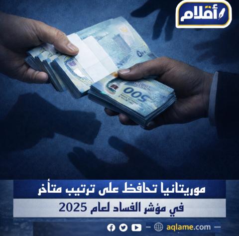 أظهرت نتائج مؤشر مدركات الفساد لعام 2025 الصادر عن منظمة Transparency International استمرار موريتانيا عند مستوى 30 نقطة من أصل 100، دون تسجيل تحسن يُذكر مقارنة بالعام الماضي، ما يعكس بقاء تصورات الفساد في القطاع العام عند مستويات مرتفعة.