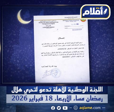 دعت اللجنة الوطنية للأهلة المواطنين إلى تحري هلال شهر رمضان المبارك للعام 1447 الهجري، مساء الأربعاء 29 شعبان، الموافق 18 فبراير 2026.