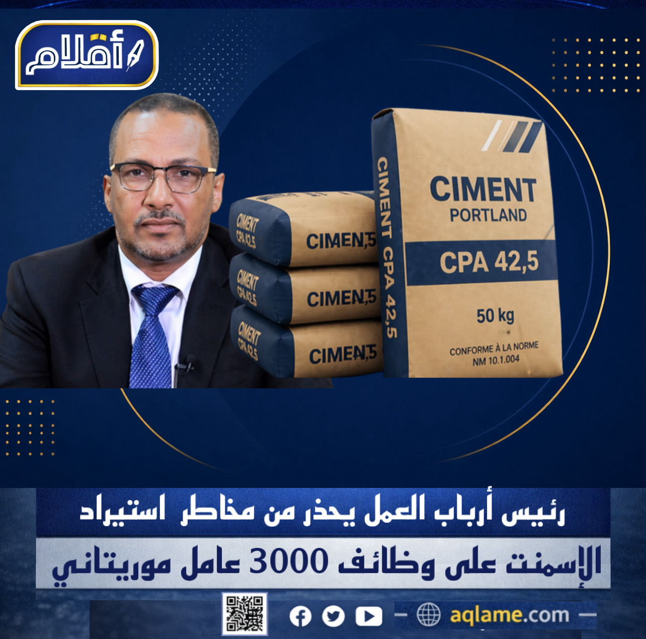 كما حذر ولد الشيخ أحمد من أن فتح باب استيراد الإسمنت من الخارج قد يفضي إلى آثار اجتماعية واقتصادية سلبية، من بينها الإضرار بمصادر دخل نحو ثلاثة آلاف أسرة ترتبط بشكل مباشر بهذا النشاط