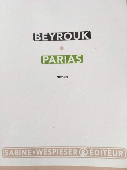 NB : Beyrouk, Parias, Sabine Wespieser éditeur, Paris