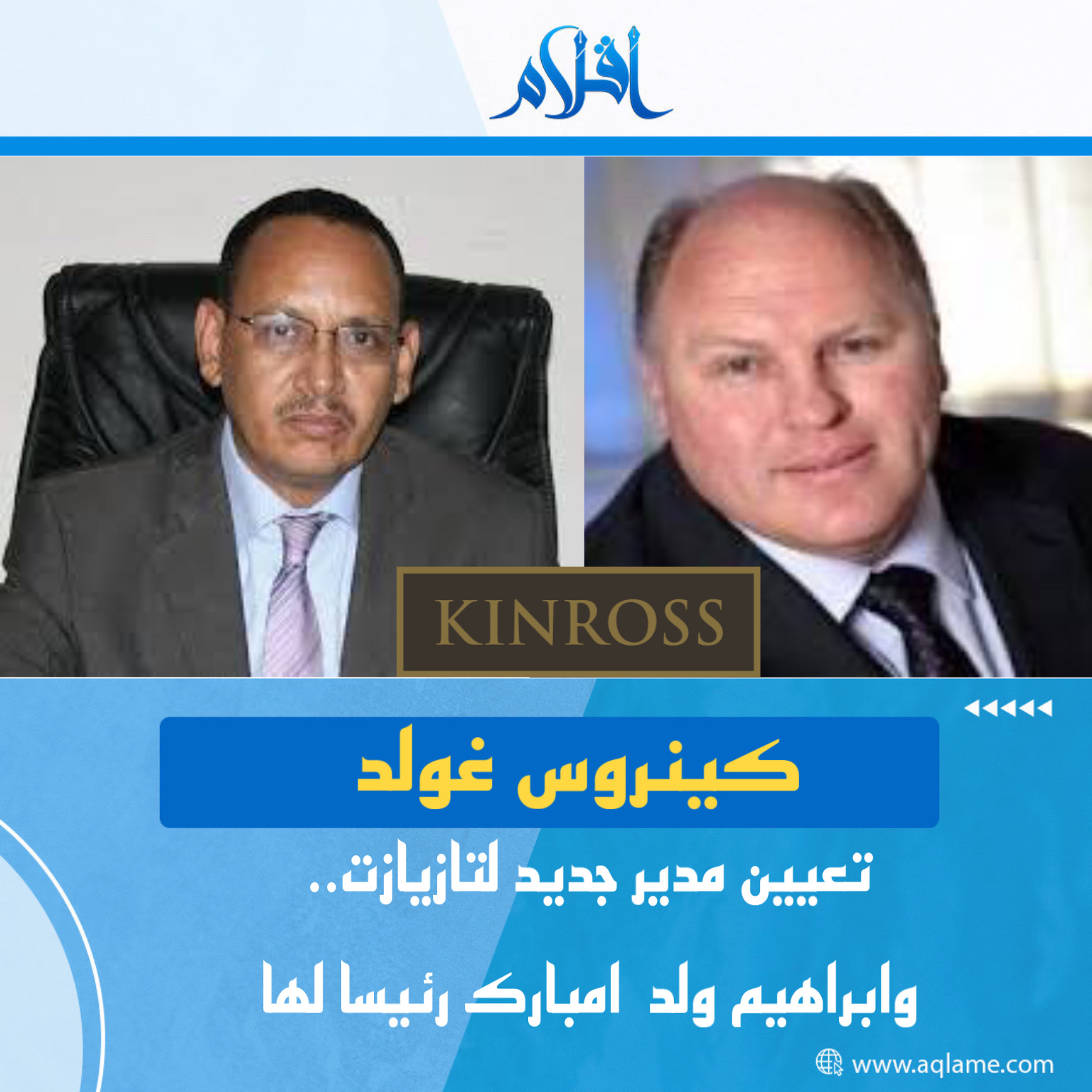أعلنت الشركة الكندية كينروس غولد كوربورايشن ("كينروس") تعيين السيد إبراهيم ولد امبارك رئيسا لتازيازت موريتانيا المحدودة ش.م (TMLSA) ورئيسا لمجلس إدارة TMLSA.