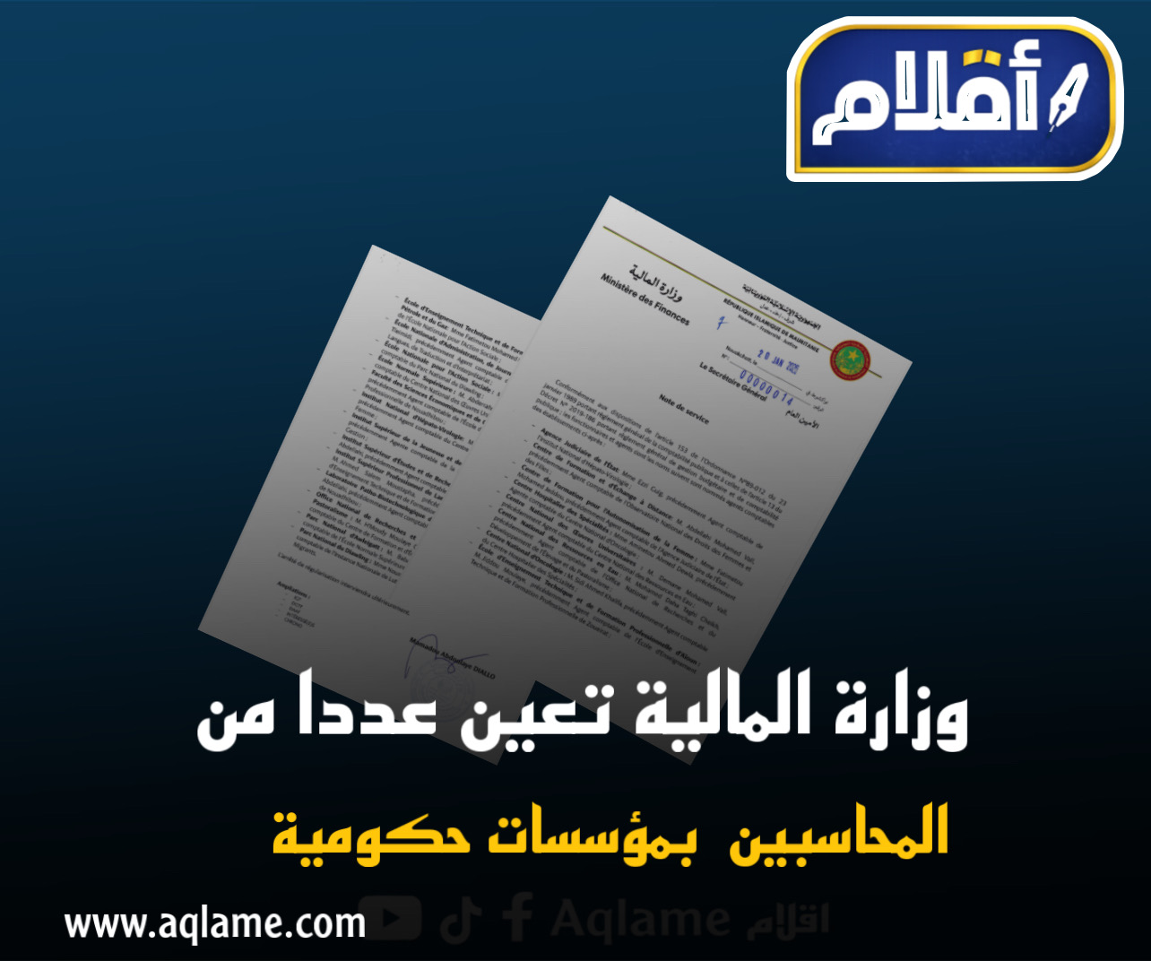 أصدرت وزارة المالية، اليوم 20 يناير 2026، مذكرة خدمة موقعة من الأمين العام للوزارة، تقضي بتعيين عدد من الموظفين كمحاسبين عموميين في عدة مؤسسات وهيئات عمومية، وذلك وفقًا لمقتضيات القوانين المنظمة للمحاسبة العمومية وتسيير الميزانية.